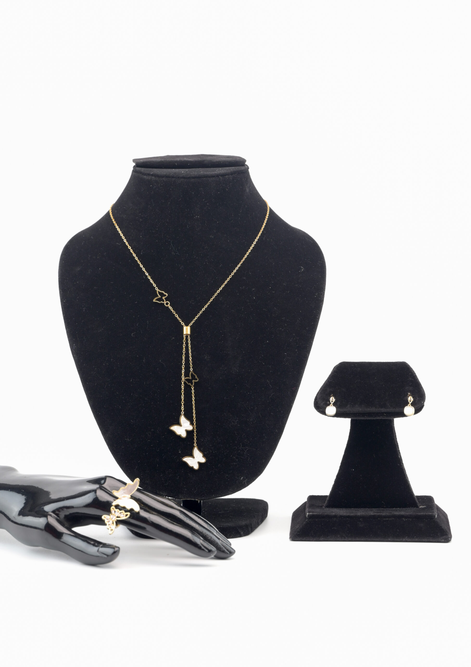 Embrace delicate, nature-inspired elegance with the Marbled Butterfly jewellery set — a cohesive collection blending contemporary style with timeless charm.