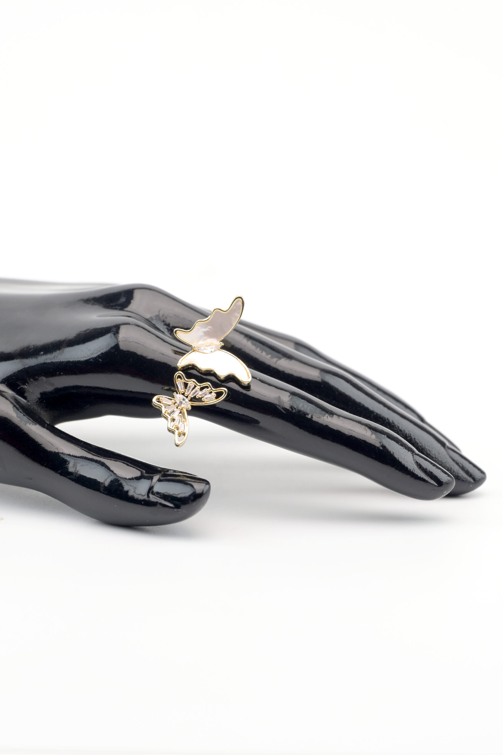 - Earrings & Ring: Matching stud earrings and ring showcase smaller butterflies with the same exquisite marbled wings and crystal accents, completing the harmonious set.