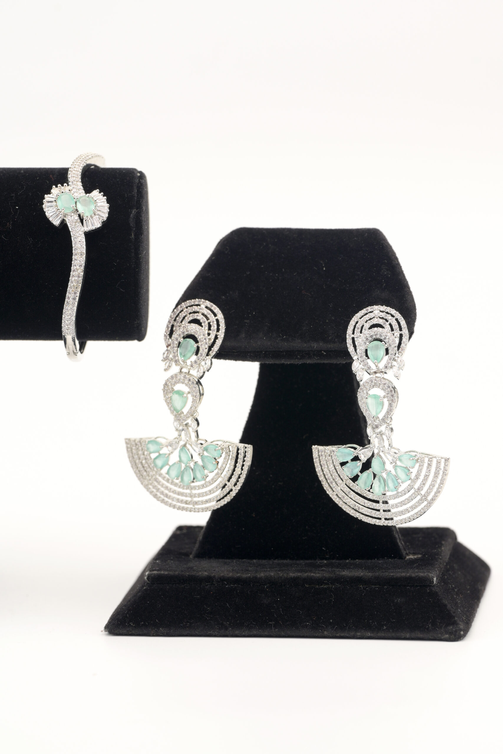 Striking Mint & White CZ Bracelet and Earring Set (TJ_BR#0006)
