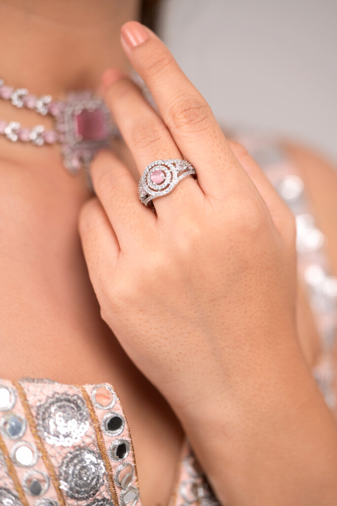 Elegant Pink Stone Halo Ring (SKU:TJ_RR#0006)